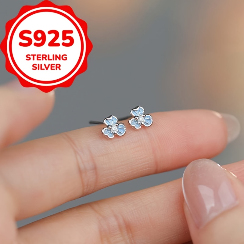 TEMU 세련된 여성용 귀걸이, 섬세한 꽃 디자인, 925 실버와 합성 지르코니아 제작, 소형 달콤한 액세서리 (박스 미포함)