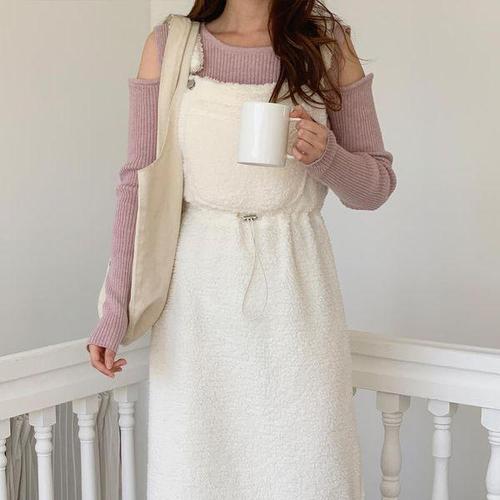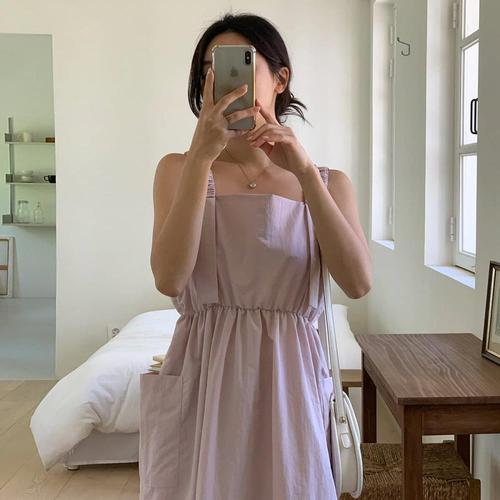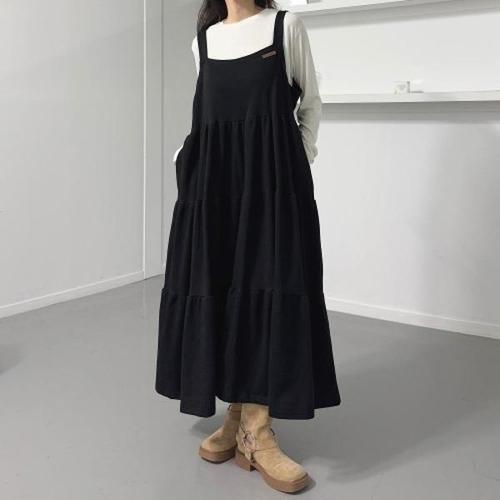 [다잇템]여성 서스펜더 스트랩 귀여운 주머니 롱 원피스