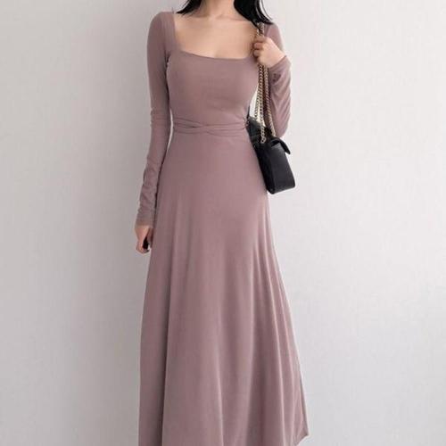 [다잇템]여성 스트랩 귀여운 후레아 스퀘어넥 롱 원피스