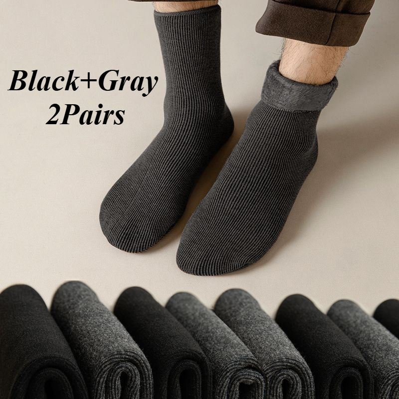 TEMU 2/4쌍 고품질 이중 두꺼운 플리스 보온 양말, 남성용 단색 작업복 양말, 편안하고 내구성이 뛰어난 폴리에스터 소재, 남녀 공용 일상 및 스키 활동 및 극한 추위에 적합