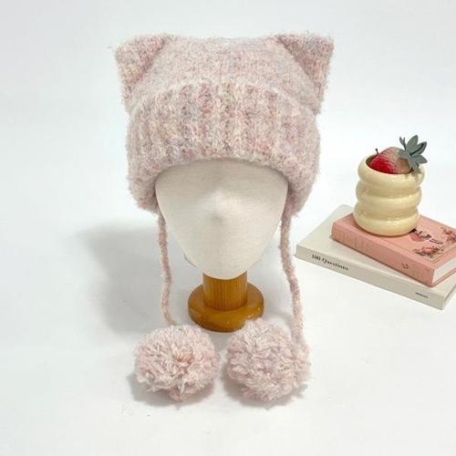 [신상오픈런]|CMC1D59|여자 큐티 고양이귀 방울끈 보카시 겨울 모자_19287456_597559