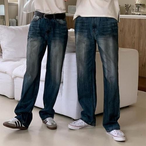 [옷자락] 남자 여자 그라데이션워싱 논스판 스트릿 롱 청바지