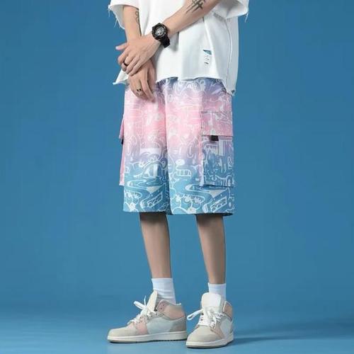 [리빌모아]남자 루즈핏 그라데이션 여름 밴딩 반바지 LD2-PTH-SSIS374-핑크