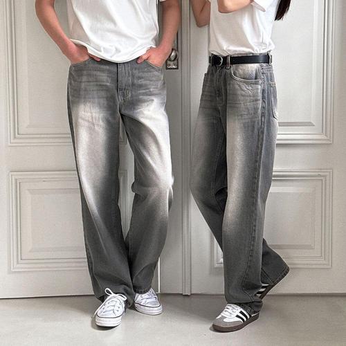 [리빌모아]남여공용 그레이틴 워싱 와이드 데님 팬츠 UJ-JEA-8061
