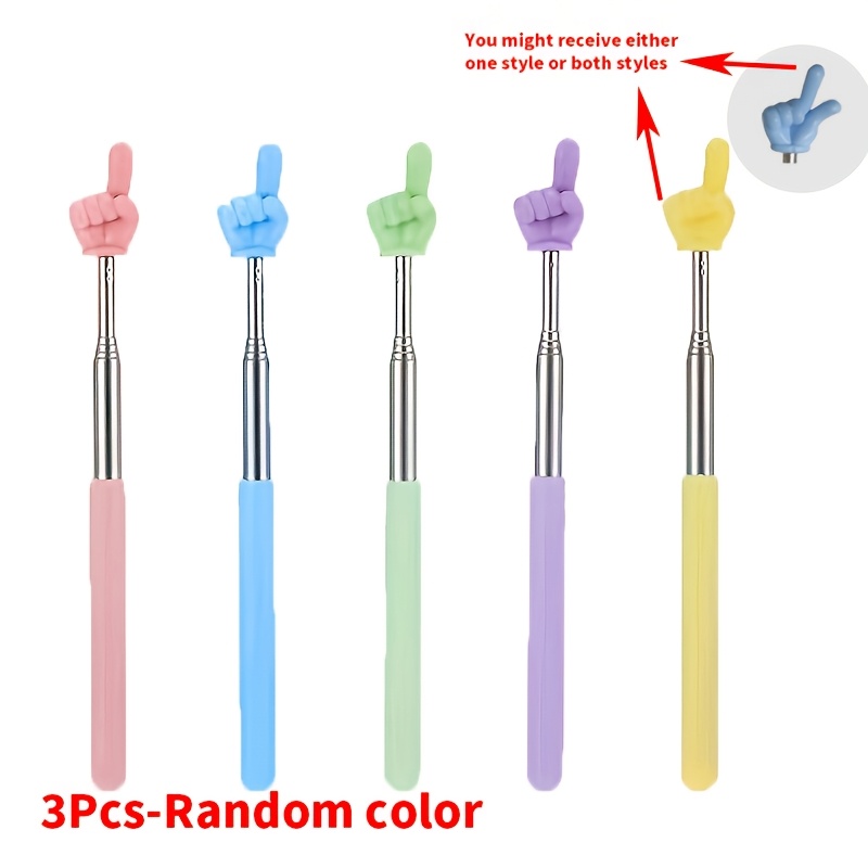 TEMU 3개입 수납형 손가락 포인터 스틱-미니 손 모양 신축식 교사용 포인터, 교실, 및 사무용품을 위한 파스텔 디자인