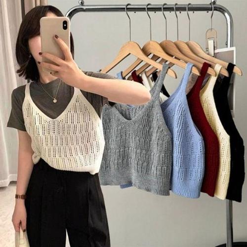 [에이치플러스몰]여성 펀칭 니트 조끼 여름 브이넥 그물 뜨개 베스트