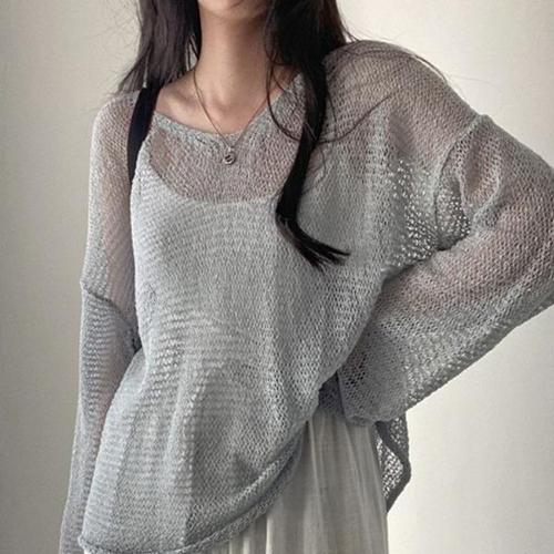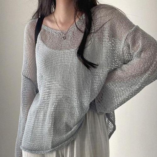 [기타브랜드]루즈핏 여름 긴팔 그물 니트 망사 시스루