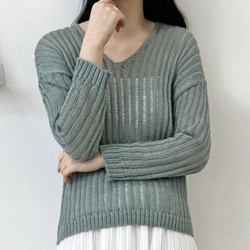 [엄지척]봄 여름 브이넥 시스루 그물 니트 여자 캐주얼 티셔츠_19613713_667501