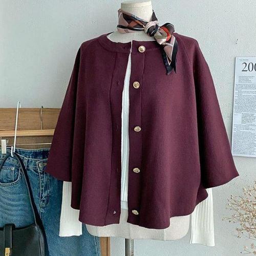 [다잇템_패션]여성 박시핏 금장단추 후레아 카라없는 가디건