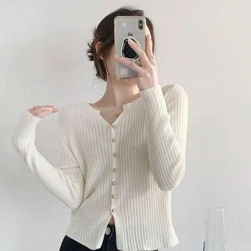 [셀러허브_여성트랜드패션]ONM (골지브이넥)트임 금장 가디건 니트