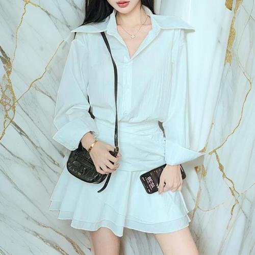 [다잇템]여성 잔주름 기모노핏 쁘띠 남방 원피스
