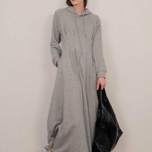 어반실루엣 / 편안한 여성 롱 후드 원피스 기모안감 선택가능