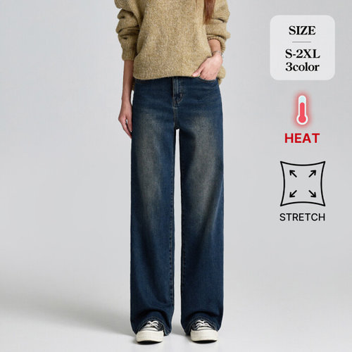 [유니제이] 쫀쫀 기모 밴딩 와이드 데님팬츠(롱/숏)