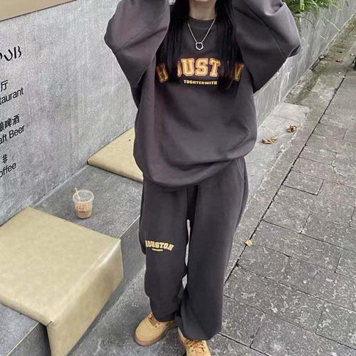 [셀럽하우스]데일리 ZFLI7269 여성 프린팅 레터링 기모 긴팔 상하의 셋업