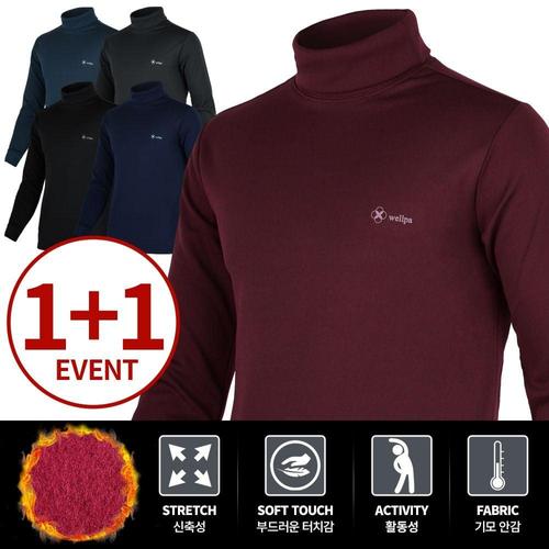 1+1남자 겨울 긴팔티셔츠 목폴라 반목 티셔츠 기능성 스판 작업복 히트텍 상의 기모 방한 등산복 골프웨어