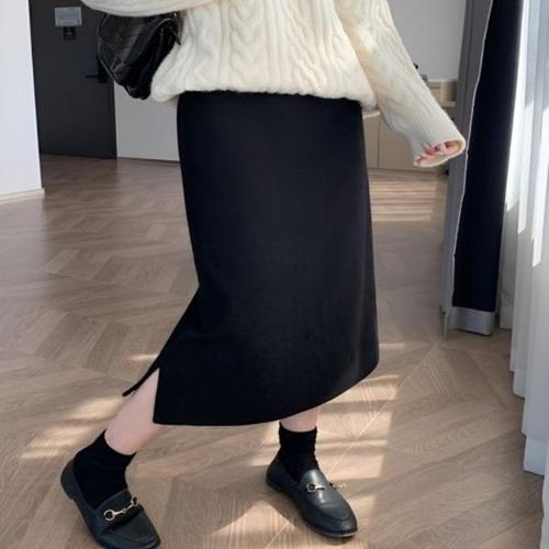 [HYIJSQI1_4B]기모롱치마 니트 롱스커트 도톰 포근 치마