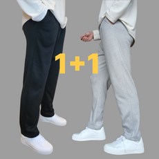 1+1 남자 고급 면 겨울 츄리닝 바지 세미 와이드 기모 트레이닝 팬츠