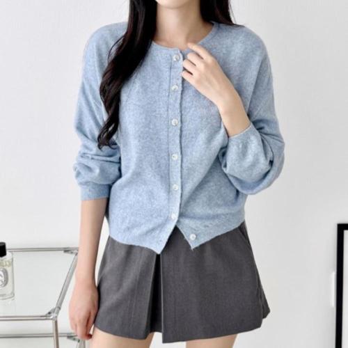 [옷자락] 여성 봄가을 간절기 라운드넥 기본 긴팔 니트 카디건