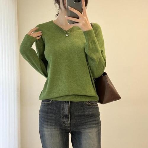 [다잇템][다잇템] 여자 비스코스 V넥 부드러운 기본긴팔 데일리 니트_23764169_588872