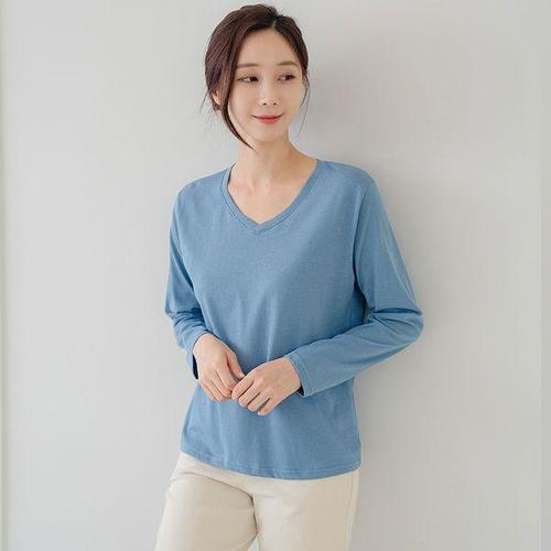 기본 브이넥 티셔츠 홈웨어 여리핏 꾸안꾸 청바지코디 여성맨투맨 여자기본티셔츠