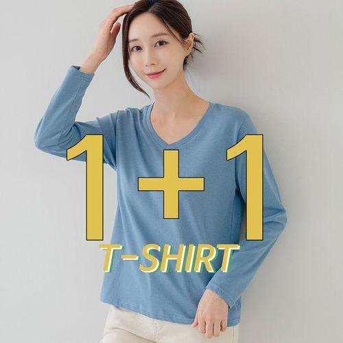[드리다]1+1 봄 가을 기본티 브이넥 이너 긴팔 빅사이즈 면 스판 티셔츠 40-50대 중년여성 엄마옷 미시 ..
