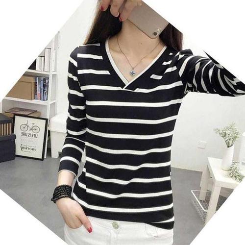 [셀러허브_여성트랜드패션]Rly V넥 스트라이프 긴팔티 여성 슬림핏 기본 데일리