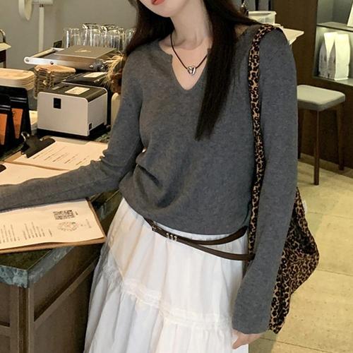 여성 봄 가을 간절기 기본 브이넥 니트 티셔츠