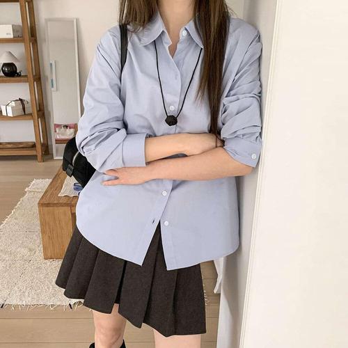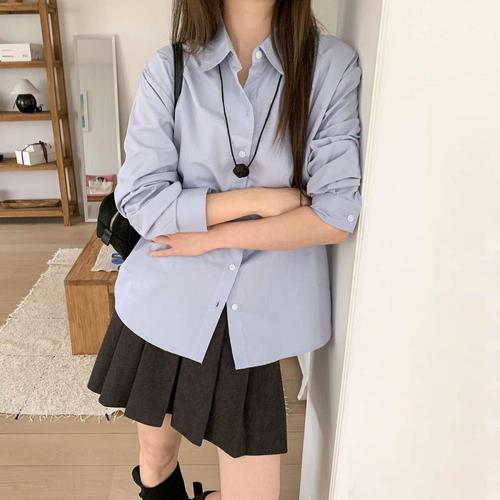 [신상오픈런]여성용 기본핏 무지 컬러 면 셔츠 블라우스