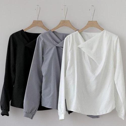 Destijl HC06 국내생산 꼬임 브이넥 깔끔한 기본 무지 블라우스 D2523bl02