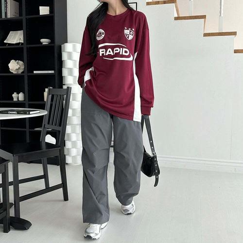 [셀럽하우스]남여공용 IGZS4371 오버핏 풋볼 배색 져지티 스포츠티 박스 긴
