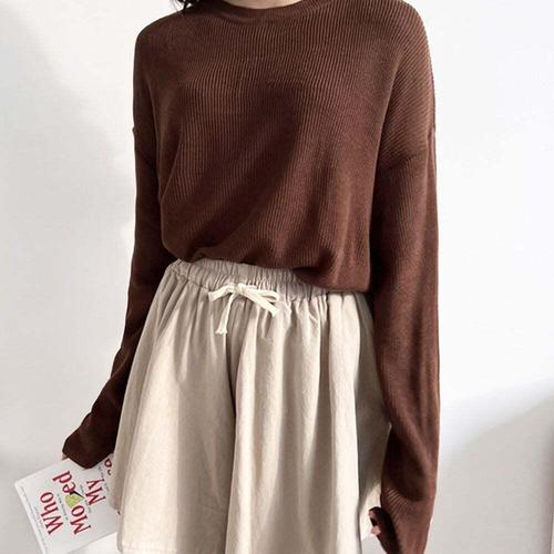 [셀럽하우스]여자 HQXN9504 루즈핏 베이직 린넨 라운드넥 긴팔 니트 티셔츠