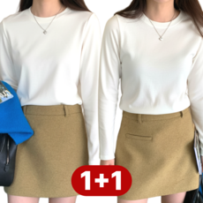 오스틱니 여성 봄가을 환절기 가성비 좋은 데일리 슬림핏 무지 라운드넥 100% 순면 겨울 긴팔 티셔츠 세트 2P