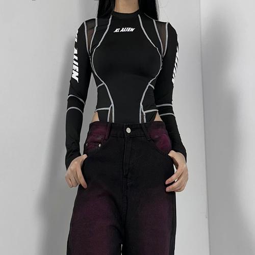 [셀럽하우스]무대의상 UQGI9536 오버로크 바이크 긴팔 바디수트 댄스부 공연