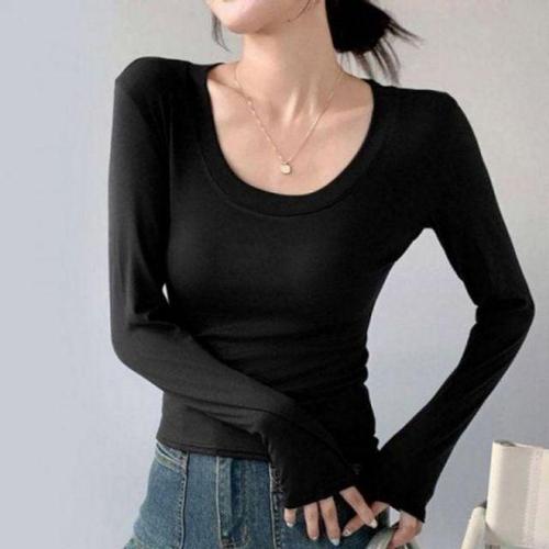 [옷자락]여성 기본 반목 긴팔 티셔츠 스판 데일리 이너웨어
