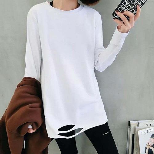 [셀럽하우스]여성 TSNN1086 옆트임 롱티 무지 흰티 긴팔 티셔츠 오버핏