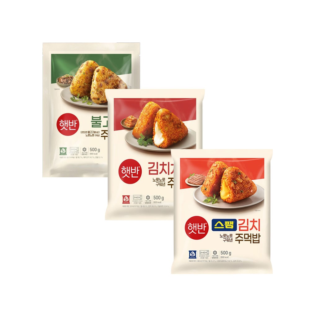 햇반 쿡반 주먹밥 500g 불고기*1개+김치치즈*1개+스팸김치*1개