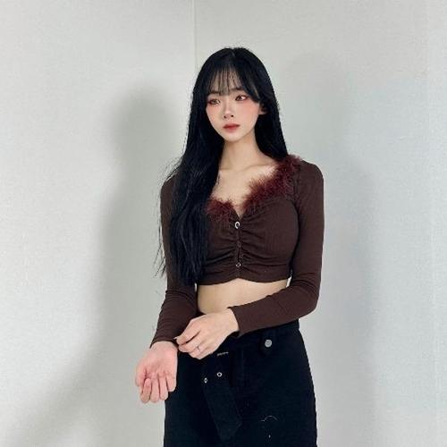[엄지척]깃털넥 앞셔링 크롭 긴팔 골지 가디건_19598969_667501