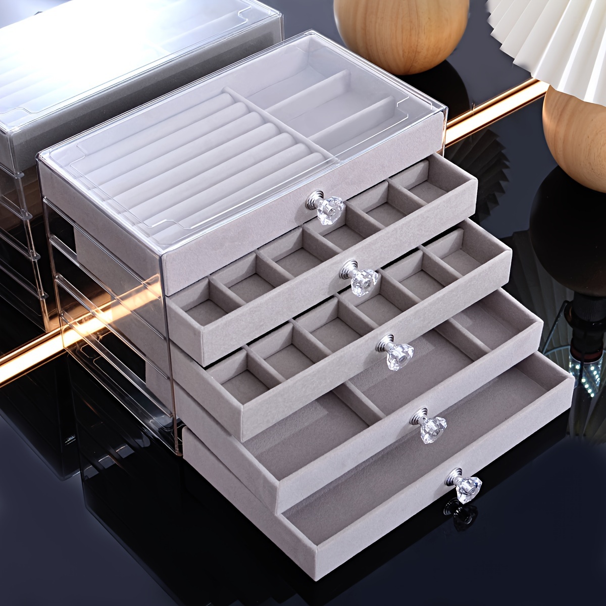 TEMU 1pc 우아한 8층 투명 보석 정리함 상자, 직물 서랍 - 큰 용량, 팔찌, 시계, 반지, 귀걸이, 목걸이용 쌓을 수 있는 디자인 - 다용도 데스크탑 보관 솔루션, 보석 상자, 보석 상자, 보석 상자