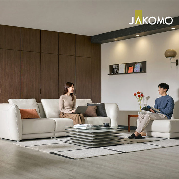 자코모 베야 4인 천연면피 소가죽 소파+스툴