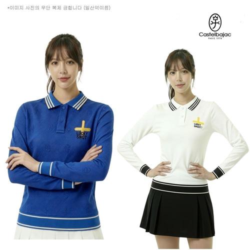 까스텔바작 골프 여성 간절기 카라 긴팔 자카드 모노그램 티셔츠 BGDF-TL501