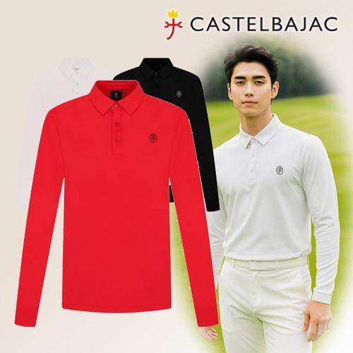 [까스텔바작]가을 남성골프웨어 기본 티셔츠 스판 속티 반목 골프티 긴팔 심플한 간절기 셔츠 세트