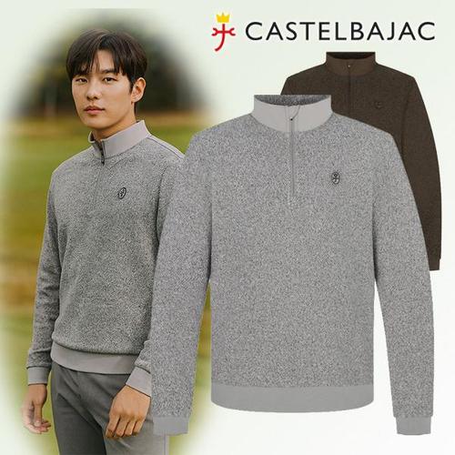 [까스텔바작]남성골프웨어 겨울 자수 프린트 하이브리드 반집업 티셔츠 기모티셔츠