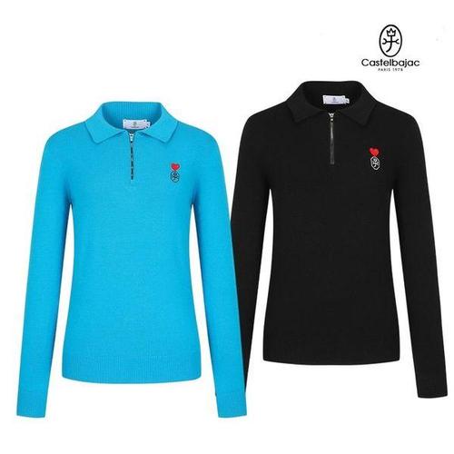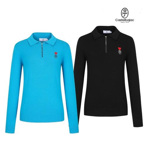 까스텔바작 골프 여성 간절기 니트 픽셀로고 카라 반집업 니트 스웨터 BGESSW-503
