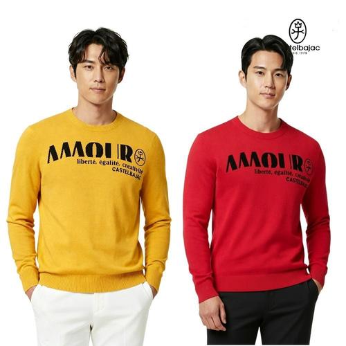 [까스텔바작]까스텔바작 골프 남자 간절기 로고 프린트 라운드 니트 스웨터 BG-EFSW001 CA3838888