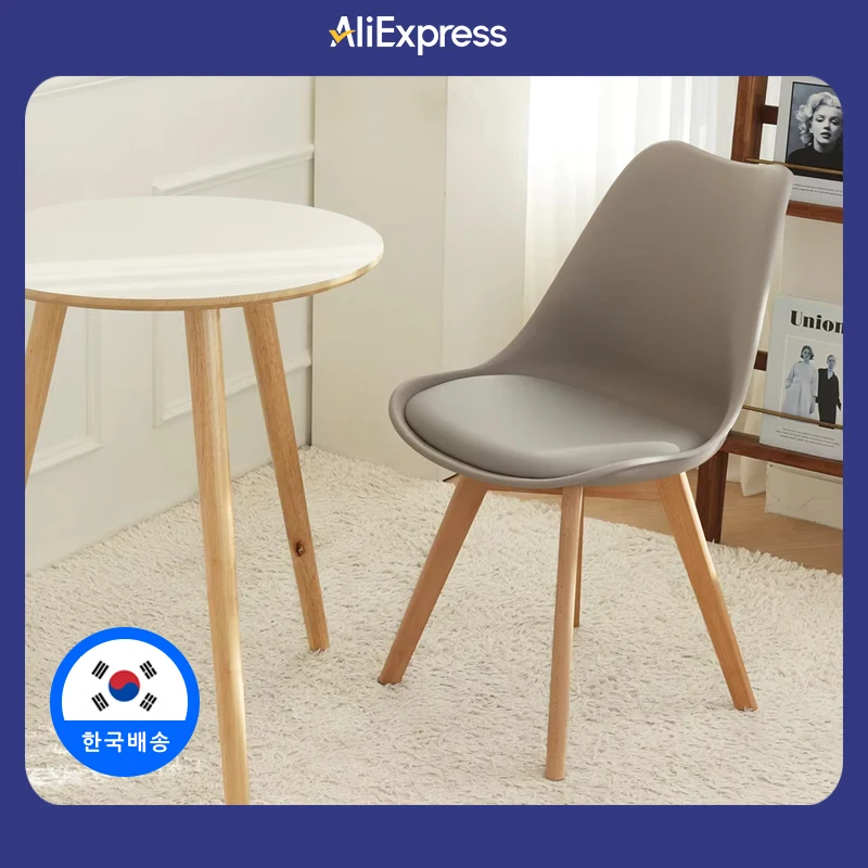 이지라이프 인테리어 가죽 쿠션 원목 에펠체어 식탁 카페 의자 그레이 2P(2인용)
