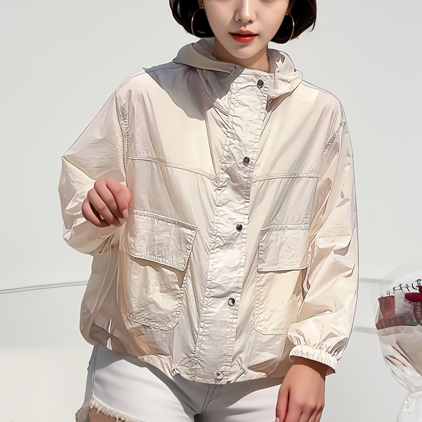 TEMU 여성용 숏 후드 재킷 2025 여름 신상 스타일 루즈핏 얇고 통기성 좋은 자외선 차단 아우터웨어 가디건 소격부형용