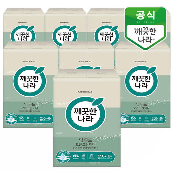 깨끗한나라 주식회사 깨끗한나라 딥무드 모던 그린 미니 미용티슈 250매 6입