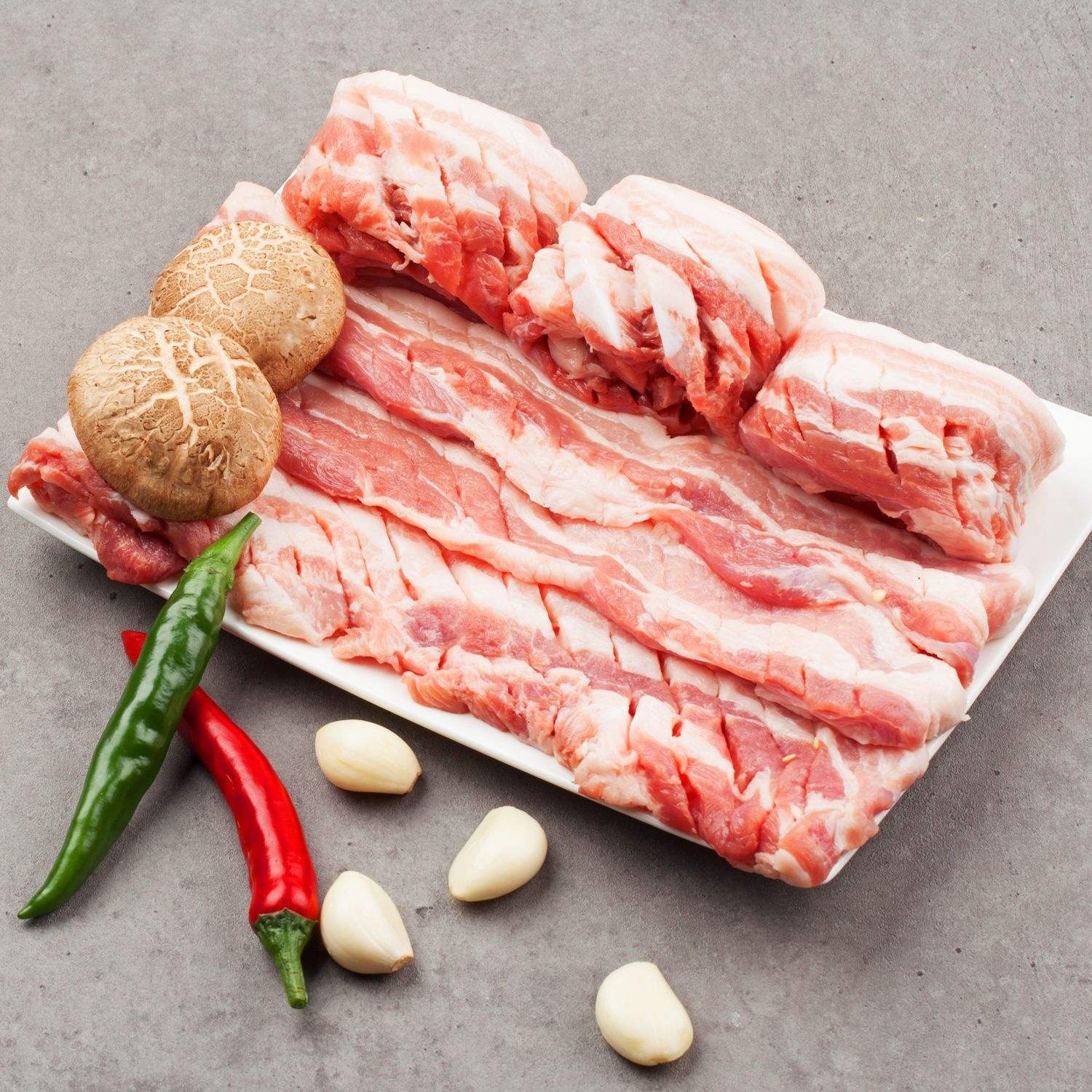 [국제식품] 우리돼지 한돈 냉장 통오겹살 1kg(구이용,바베큐용)