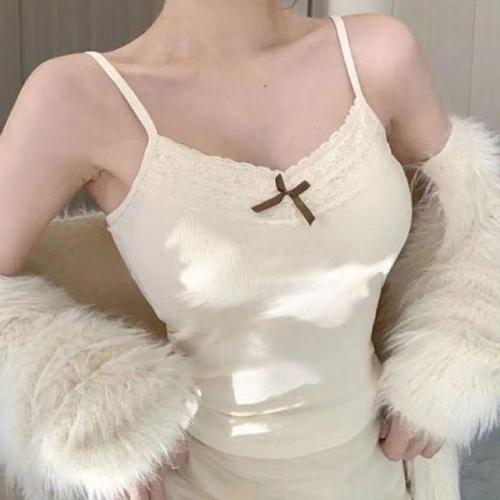 망사 시즌 보우 패드내장 스키니숏탑 끈나시티 WFK1WL6