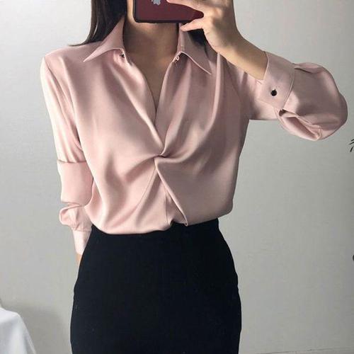 [신상오픈런]여성 기본핏 V넥 꼬임 롱슬리브 오피스룩 블라우스